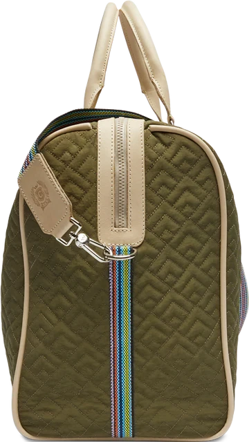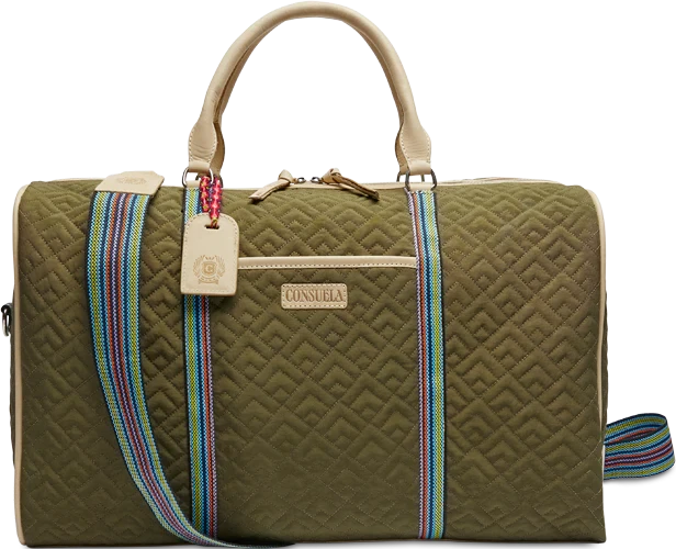 Our largest duffel style, the Weekender, is our go-to for weekend road trips. This duffel is roomy enough for all your essentials and features leather handles, an adjustable webbing strap, two interior pockets, and two exterior pockets. If you’re looking for a TSA carry-on compatible bag, check out the Jetsetter or the Zipper Tote!