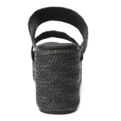 - Braided raffia upper.
