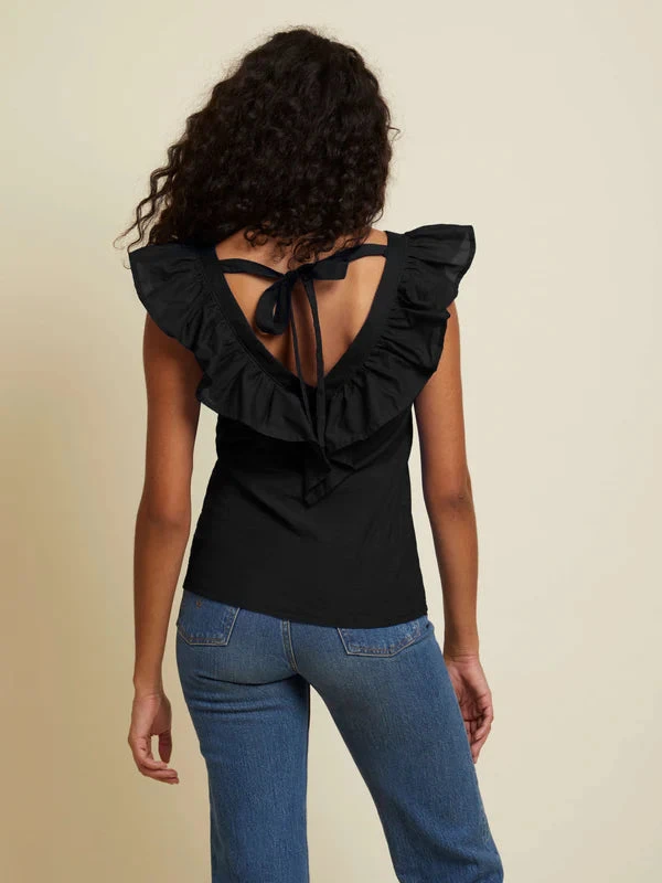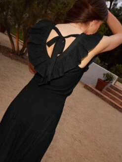This one is all about the drama. A deep v neck, bold ruffle and (surprise) an unexpected back bow detail. Be prepared for compliments. (This one comes in Jet Black.)