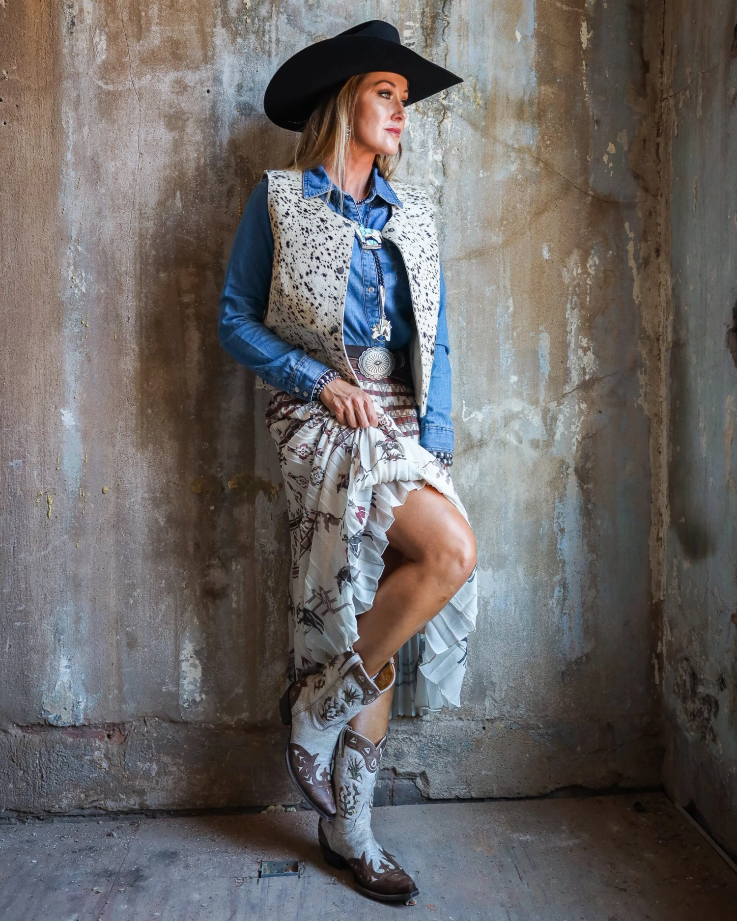 - A-Line, Multi-Blanket Print Skirt with Side Zipper and Pleats