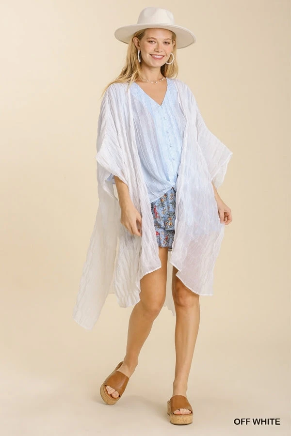 Sheer Ruffle Texture Kimono with Side Skit